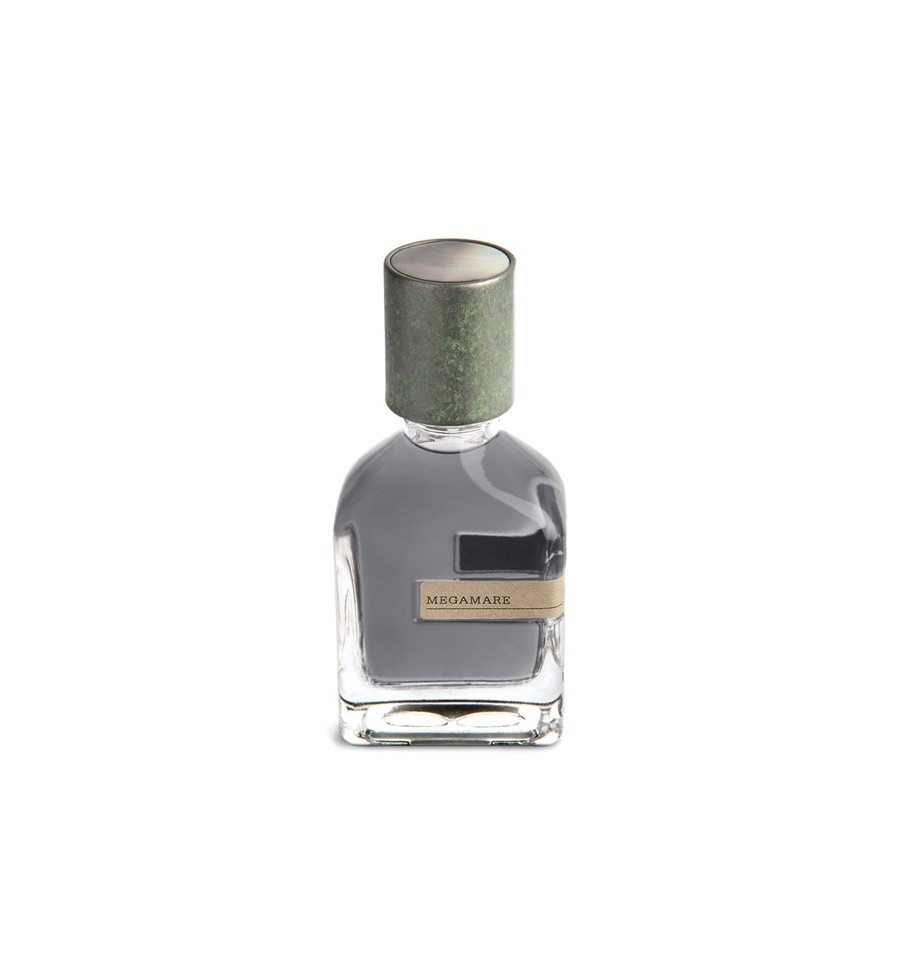 Un ritratto della bellezza che giace sulla superficie dell'oceano e dei pericoli delle profondità salate sottostanti. Megamare è un vorticoso tifone di un profumo, una scia inebriante di acqua salmastra, alghe verdi pungenti, aria di mare dolce-speziata e un muschio scintillante che irradia con l'intensità del sole di mezzogiorno che si riflette sulle onde ondeggianti dell'oceano aperto. Con immensa longevità e potente proiezione. Tranquillo e terrificante, sereno e sensuale, Megamare irradia lo yin e lo yang del mare.