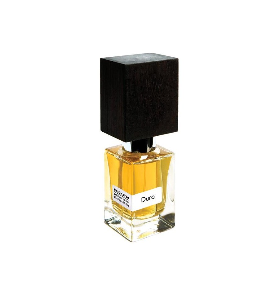 DURO: Questa bottiglia di profumo fa parte del progetto Nasomatto. La fragranza mira ad intensificare tutti gli aspetti di virilità maschile.